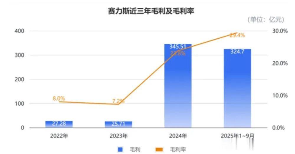 2025年前三季度,赛力斯毛利率定格在29.4%。